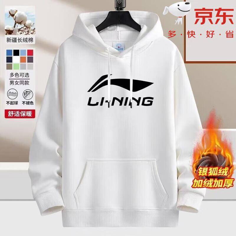 LI-NING李宁国潮卫衣2025冬季新款爆款宽松舒适柔软亲肤连帽加绒卫衣印花 白色-经典D M 码 85-110斤